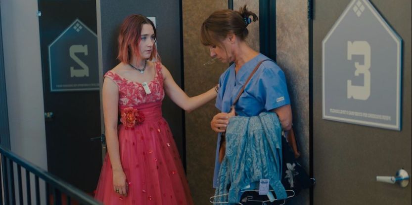 I do need to stress: Lady Bird is hilarious. From dumb theater rehearsal games to bad teenage philosophizing to just awful things teenagers say to each other, Gerwig knows how to get a laugh from just about every scenario you can think of. Lady Bird is a very sarcastic character who never wants to take things too seriously, and Ronan knows exactly how to play that in a way to make the jokes hit without her every feeling obnoxious or precocious or overly self-aware of the jokiness. A film about a financial struggles, teenage angst, and family fighting without humor could be unbearable, and for a first film, it’s rather remarkable how well Gerwig manages that balance.